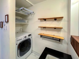 écran, chutes à déchets à chaque étage, station de lavage